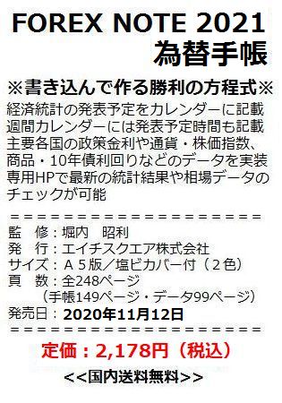 | FOREX NOTE 2021 為替手帳は以下のページよりご購入いただけます。 FOREX NOTE 2021 為替手帳 |